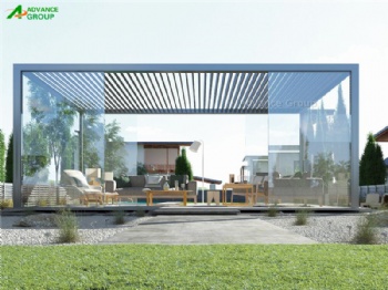 2)With an electric motor system and aluminum extrusions specially designed, the louver blades of the aluminum pergola are closedcompletely to prevent the sunlight and rain.