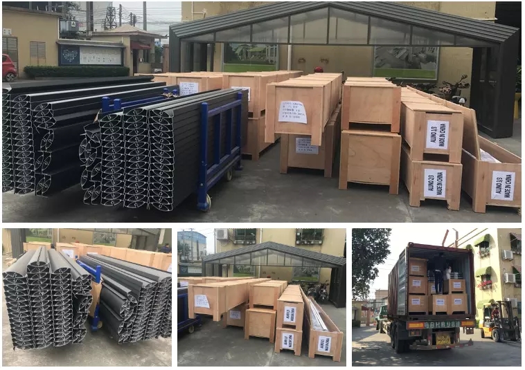 2)With an electric motor system and aluminum extrusions specially designed, the louver blades of the aluminum pergola are closedcompletely to prevent the sunlight and rain.